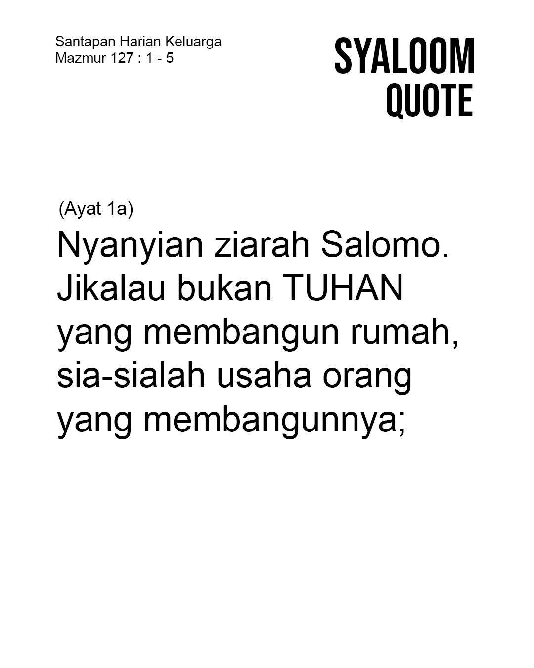 Mazmur 127 adalah sebuah nyanyian ziarah yang dinisbatkan kepada Salomo. Mazmur ini menekankan bahwa segala usaha manusia, baik dalam membangun rumah, menjaga...