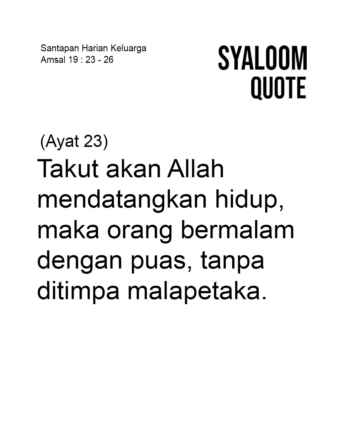Hidup yang takut akan Tuhan adalah hidup yang penuh damai sejahtera dan jauh dari kehancuran. Anak muda yang takut Tuhan akan menjaga hidupnya di jalan...