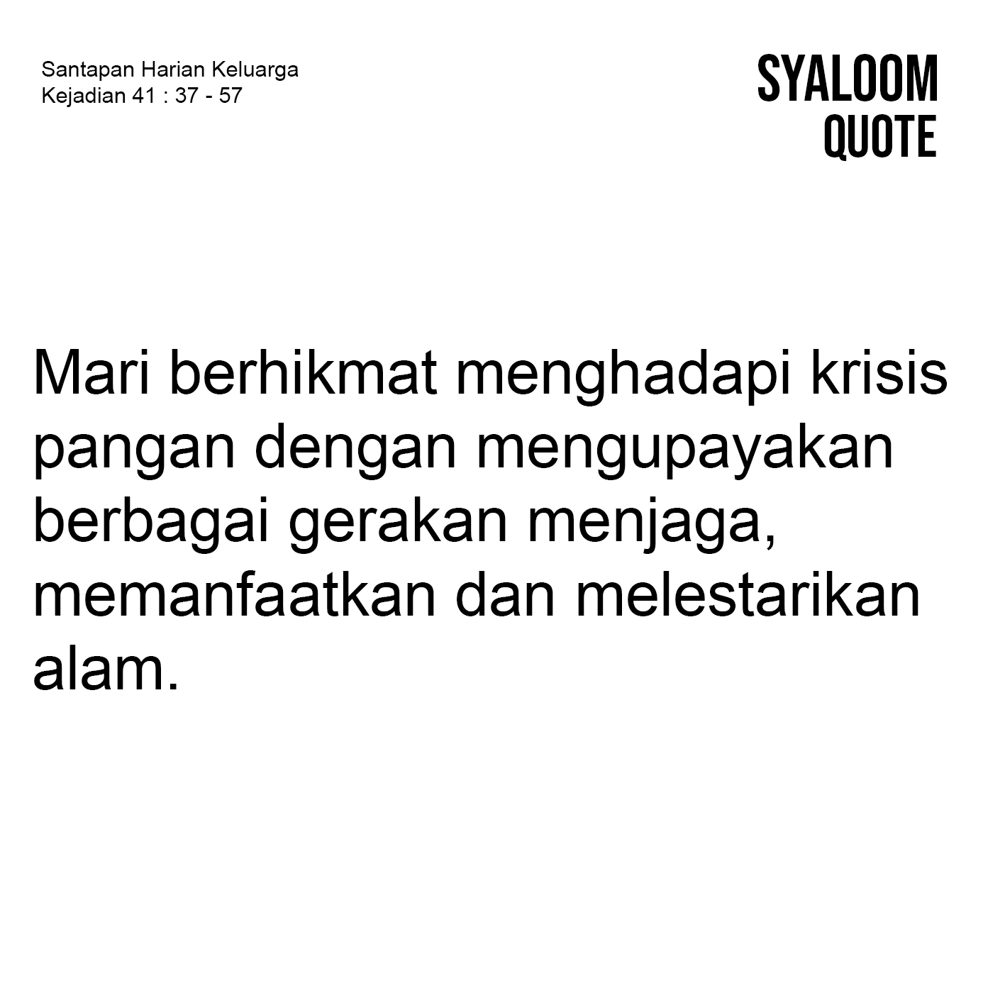 Dalam beberapa kali sambutan yang disampaikan oleh bapak penjabat walikota Ambon di kegiatan-kegiatan gereja, beliau mengatakan bahwa tahun ini memiliki tantangan tersendiri. Ada 3 tantangan yang menurut beliau akan kita hadapi di tahun ini yaitu: pertama, perubahan iklim yang menyebabkan krisis pangan dan air bersih. Kedua, ketidakpastian arah geoplitik dan ketiga, disrupsi pasokan energy global. Semua tantangan ini akan memberikan dampak langsung bagi kita. Kenaikan harga-harga barang, merosotnya nilai tukar rupiah dan sebagainya. Menghadapi berbagai tantangan ini pemerintah akan tetap memperkuat peran pemberdayaan. Kisah yang kita baca hari ini, memperlihatkan pula cara Yusuf yang pada waktu itu menjadi penguasa di Mesir, untuk bertindak ketika menghadapi krisis kelaparan. Dengan kemampuan dan hikmat yang dimilikinya, ia berupaya menyimpan gandum selama tahun-tahun kelimpahan, sebagai antisipasi ketika datangnya tahun-tahun kelaparan di Mesir. Dengan caranya ini ia berhasil menolong rakyat yang dipimpinnya termasuk bangsa-bangsa lain diseluruh bumi yang datang meminta bantuan kepadanya. Mari kita berhikmat menghadapi krisis pangan ini dengan mengupayakan berbagai gerakan, dimulai dari keluarga: menanam, melaut, memasarkan, menabung, mengelola dan mengendalikan diri, menjaga dan melestarikan alam