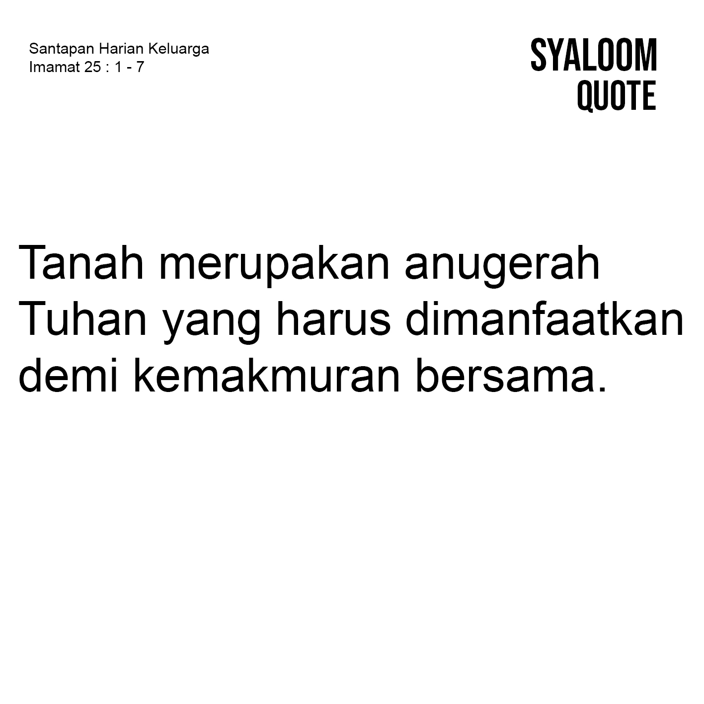 Doa: Tuhan, kiranya tanah sebagai milik-Mu memberikan kesejahteraan bagi kami, Amin.