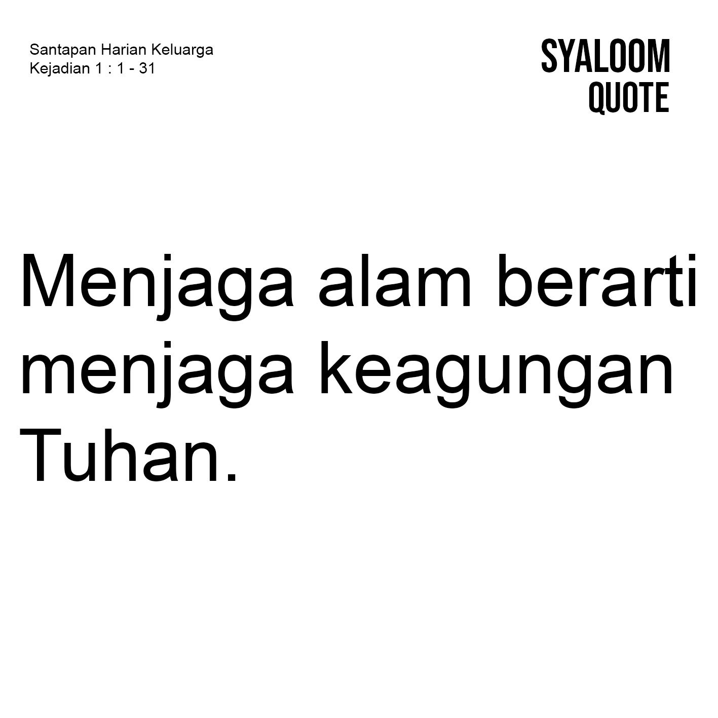 Doa: Roh Kudus tuntun kami untuk mengusahakan alam dengan baik demi kesejahteraan seluruh makhluk. Amin.