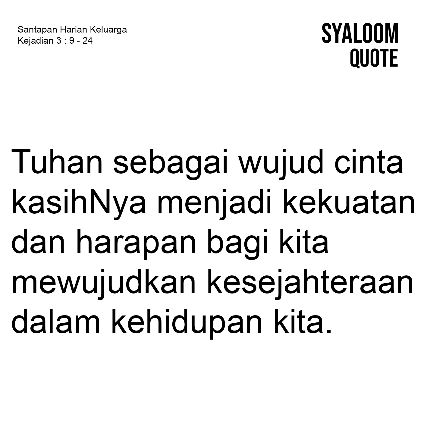 Allah menciptakan langit dan bumi beserta isinya dengan segala baik. Semua yang baik dalam ciptaan Tuhan itu, dinodai dengan kejatuhan Adam dan Hawa dalam dosa. Saat mereka makan buah pengetahuan baik dan jahat oleh hasutan si pencoba, mata mereka terbuka dan mengetahui bahwa mereka telanjang. Mereka menjadi takut dan bersembunyi dari Allah. Tuhan pun menghukum ular sebagai si pencoba. Hawa pun harus susah payah waktu mengandung dan melahirkan sebagai seorang ibu. Pun juga Adam sebagai laki-laki harus bekerja keras dengan mengolah dan mengusahakan tanah sebagai pemberian Tuhan Allah. Mereka akan mengusahakan makanan dari semak duri dan tumbuh-tumbuhan di padang. Dengan berpeluh, bekerja keras untuk mendapatkan berkat sampai kembali kepada Allah sebagai Pencipta. Hawa akan menjadi ibu dari semua yang hidup. Tuhan Allahpun membuat pakaian dari kulit binatang untuk melindungi tubuh mereka. Sekalipun demikian, semua yang dilakukan Allah bertujuan untuk kesejahteraan dan kemakmuran hidup manusia. Panggilan hidup baik kepada Adam dan Hawa dan setiap kita sebagai keluarga Allah adalah melanjutkan kehidupan yang dianugerahi Tuhan bagi kita. Panggilan itu sekalipun diwanai dengan berbagai tantangan, persoalan dan pergumulan hidup, namun tuntunan dan penyertaan Tuhan sebagai wujud cinta kasihNya menjadi kekuatan dan harapan bagi kita untuk berupaya mewujudkan kesejahteraan dalam kehidupan kita.