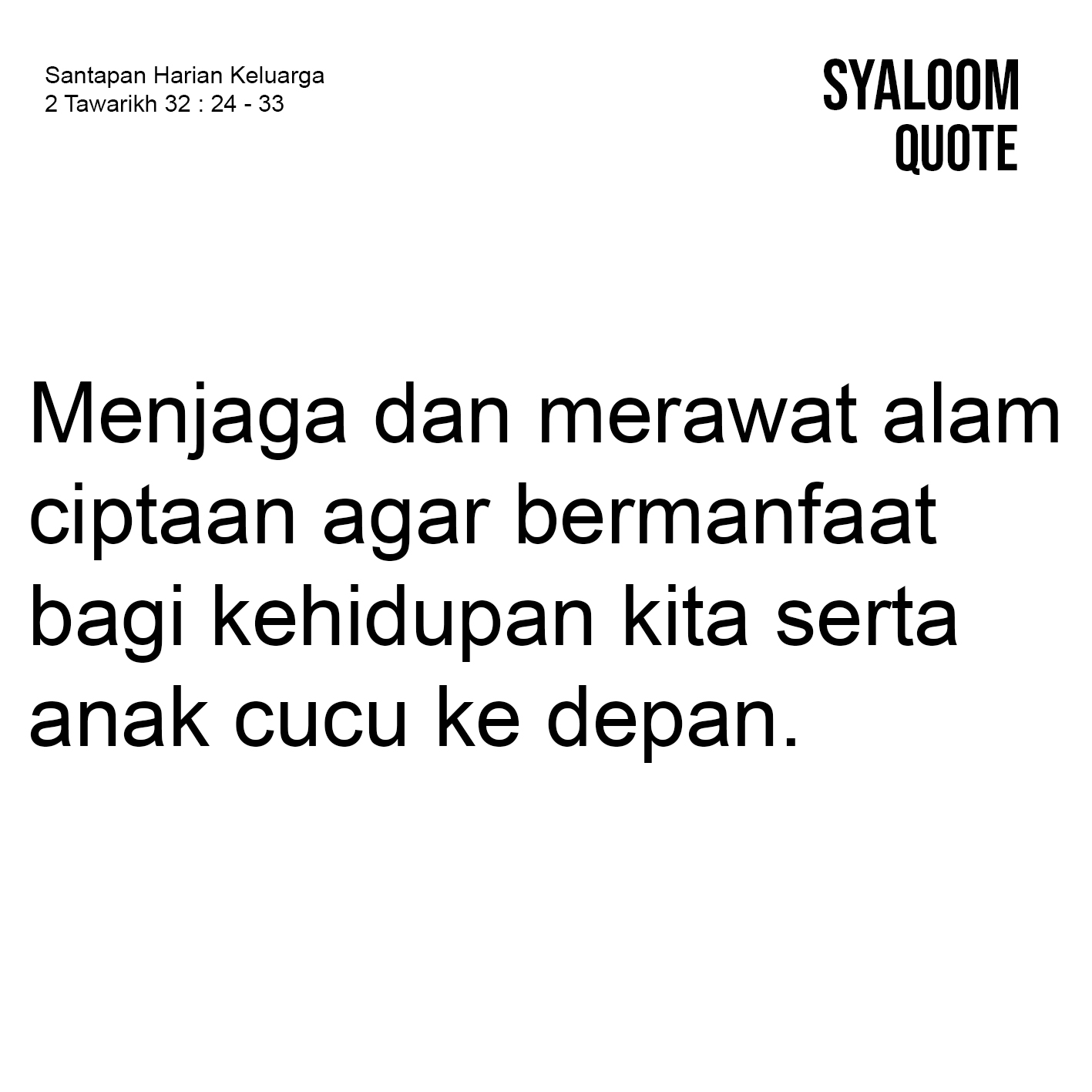Doa: Tuhan mampukan kami agar dapat menjaga dan merawat alam dengan baik. Amin.