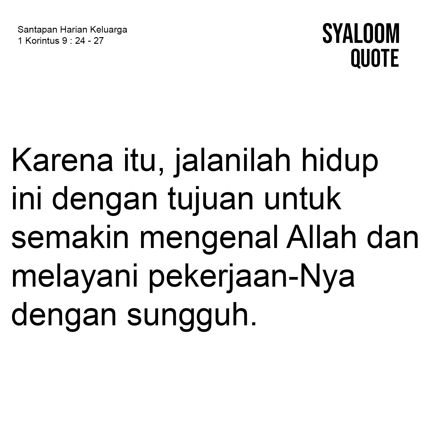 Tidak ada seorangpun yang melakukan sesuatu tanpa tujuan yang jelas. Misalnya, setiap orang makan pasti memiliki tujuan untuk kenyang. Atau seseorang belajar pasti memiliki tujuan untuk pintar dan cerdas. Tetapi menjadi pertanyaannya: apa tujuan kita melakukan pelayanan Allah? Apalagi, upah dan gaji bukan menjadi bagian kita selaku para pelayan? Untuk menjawab pertanyaan tersebut, Paulus menggambarkan kehidupan kita di dunia sebagai arena pertandingan lari. Ada umat yang memilih berlari dan berusaha mendapat makhota fana, tetapi ada juga berlari dan berusaha mendapat makhota abadi. Tindakan seseorang yang berlari dalam arena adalah gambaran Paulus tentang apa yang kita lakukan sepanjang hidup ini. Bagi Paulus, tindakan berlari yang baik adalah ketika kita membawa diri untuk melayani Allah dan pekerjaan-Nya, bukan hanya mencari kesenangan dunia semata. Memang benar adanya, bahwa gaji dan upah tidak menjadi bagian kita, namun percayalah bahwa ada janji keselamatan kekal bersama Allah. Karena itu, jalanilah hidup ini dengan tujuan untuk semakin mengenal Allah dan melayani pekerjaan-Nya dengan sungguh, sehingga kita tidak menjadi seorang petinju yang menyerang orang secara sembarangan, ataupun seorang pelari yang berlari tanpa tujuan.
