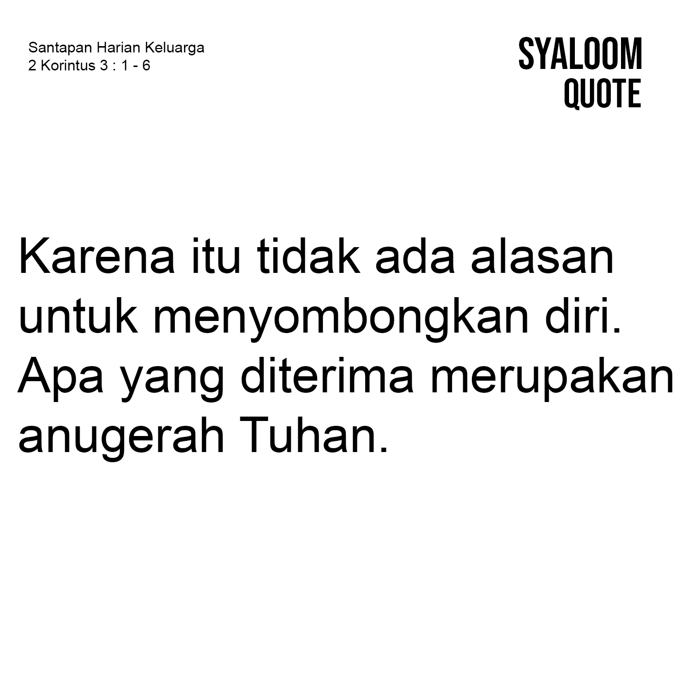Ada seorang pengusaha kaya raya mengajak seorang pendeta makan di salah satu restoran ternama, selesai makan mereka menuju tempat parkir dan bertemu dengan seorang pengemis. Kemudian pengusaha tadi memberikan 100 ribu rupiah kepada pengemis itu. Si pengemis langsung gembira dan mendoakan pengusaha kaya tadi, tapi si pengusaha langsung menegur “Stop jangan berdoa untuk saya karena saya sudah kaya, berdoa untuk dirimu saja karena kamu miskin”. Perkataanya menunjukkan kesombongan diri. Hal kesombongan atau memuji diri pun diperlihatkan oleh orang Kristen di Korintus dalam perikop bacaan tadi. Mereka suka memuji diri (ay.1) atas hasil pekerjaan dan pelayanan mereka. Untuk itu Paulus mengingatkan mereka bahwa Jemaat Kristen di Korintus adalah hasil dari pekabaran Injil yang dikerjakan oleh Roh Kudus. Karena itu tidak ada alasan untuk menyombongkan diri. Apa yang diterima merupakan anugerah Tuhan.