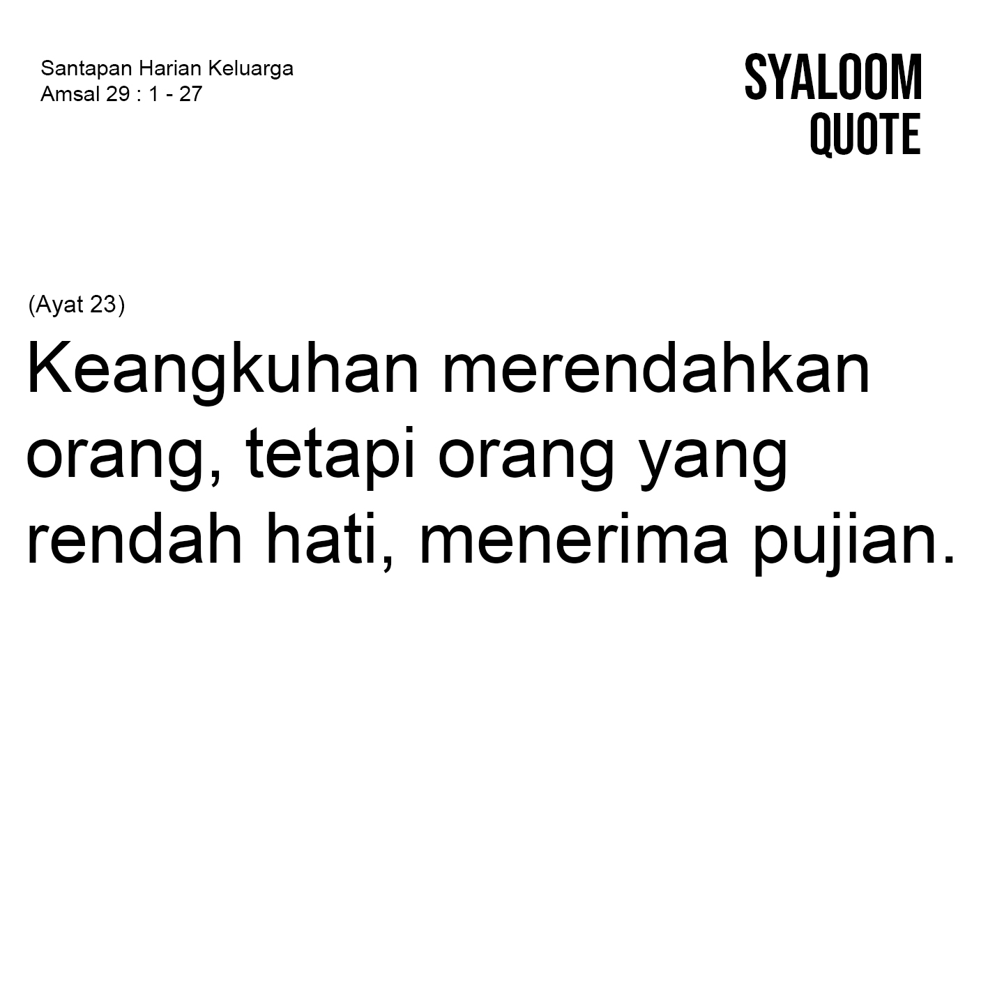 Jalan hidup orang benar, diterangi oleh cahaya Firman Tuhan. Apabila, ia jatuh tidaklah sampai tergeletak. Sebab Tangan Tuhan menopang”. Penggalan lagu rohani ini sungguh berkesan dan menguatkan setiap jiwa yang letih. Berbagai peristiwa yang menimpa kehidupan manusia akhir-akhir ini sungguh memprihatinkan. Bencana alam, kelaparan, sakit bahkan kealpaan manusia sehingga melakukan kejahatan sering menjadi batu sandungan untuk mempercayakan hidup sepenuhnya kepada Allah. Amsal 29:1-27 secara tegas menyampaikan bahwa manusia yang hidup dalam keserakahan, kebebalan, kejahatan dan keangkuhan akan menuai kebinasaan. Sebaliknya, mereka yang hidup dipenuhi Roh Allah, berhikmat dan melakukan kehendak Allah akan menikmati berkat damai sejahtera Allah. Meminta hikmat dari Allah untuk menjalani kehidupan di dunia ini adalah pilihan bijaksana dan tepat bagi orang yang takut akan Tuhan. Oleh karenanya, sebagai persekutuan keluarga, jemaat dan masyarakat hendaknya kita meminta hikmat Allah agar kita tetap dituntun ke jalan yang benar.