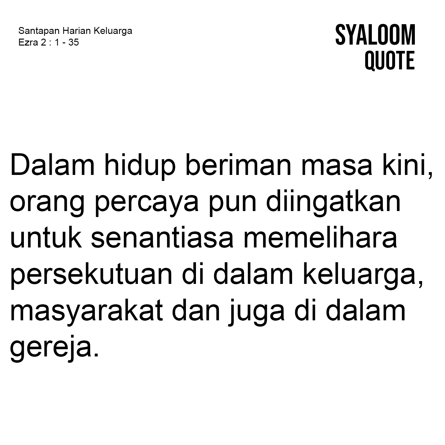 Doa: Tuntunlah kami Tuhan agar tetap menjaga keutuhan dalam hidup bersama. Amin.