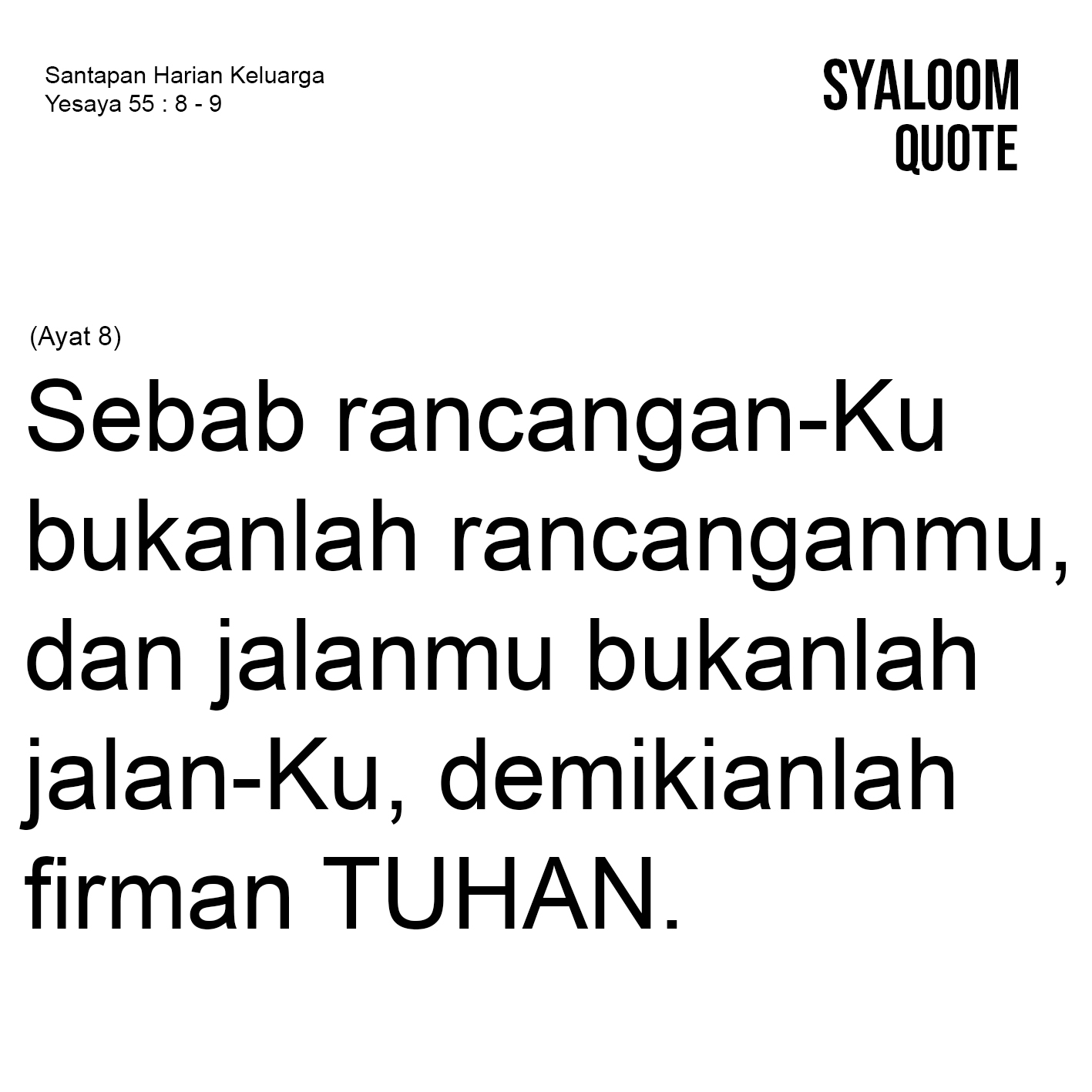Tema kitab Yesaya adalah “Tuhan Menyelamatkan”. Hal ini menunjukkan bahwa sejarah Israel adalah sejarah bersama Tuhan yang menyelamatkan. Pasal 55 berisi penghiburan dan pengharapan bagi umat pilihan Allah yang hidup di pembuangan Babel. Nubuat Nabi Yesaya menunjukkan bahwa Tuhan Allah memiliki rancangan damai sejahtera bagi Bangsa Israel berdasarkan Kasih-Nya (Ay.8-9). Oleh sebab itu,Tindakan penyelamatan Allah ini harus disertai dengan sikap taat untuk kembali kepada Tuhan Allah. Israel harus meninggalkan perbuatan yang menyembah allah lain dan mempersembahkan korban kepada berhala supaya mereka memperoleh pengasihan dan pengampunan Allah (ay.7). Seringkali kita mengalami persoalan silih berganti, misalnya : kesehatan, keuangan, pekerjaan, masalah jodoh dsbnya. Hal tersebut membuat kita kecewa dan marah bahkan kepada Tuhan tapi jika kita mengingat kasih setia Tuhan yang tak berkesudahan dalam hidup maka kita tidak akan berhenti mengucap syukur dan menyerahkan seluruh hidup dalam tuntunan dan penyertaan-Nya..Amin!