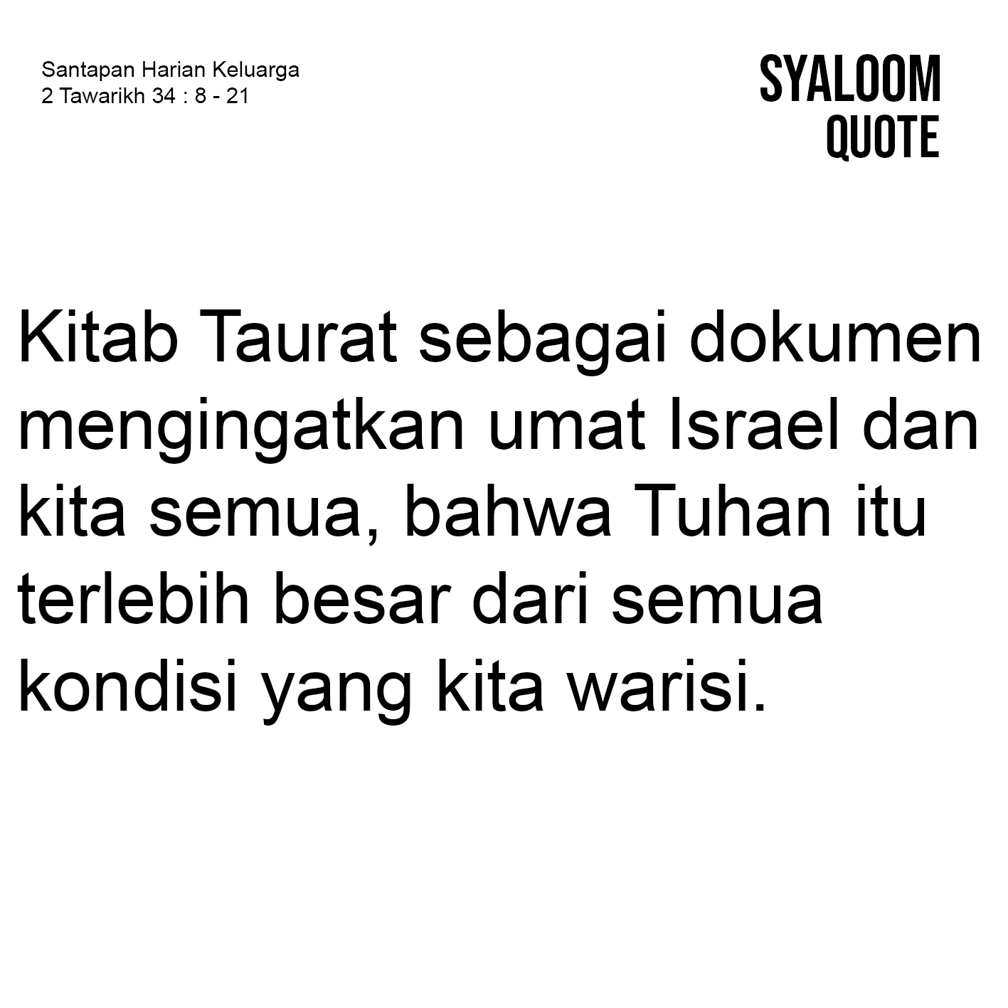 Kitab Taurat sebagai dokumen mengingatkan umat Israel dan kita semua, bahwa Tuhan itu terlebih besar dari semua kondisi yang kita warisi, termasuk kondisi yang buruk dan warisan-warisan yang negatif. Jikalau Tuhan memberi perkenaan dan rahmat, dan kita tidak menyerah pada penjara nasib atau kegagalan di masa lampau atau warisan-warisan yang membebani dan menghambat, maka segala perubahan bisa saja terjadi. Firman Tuhan adalah dokumen warisan yang baik dan menguntungkan, bacalah!