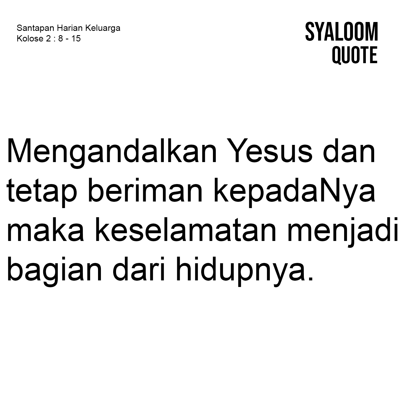 Hidup menawarkan berbagai hal yang dapat mempengaruhi kehidupan seseorang. Dalam perjalanan hidup di tengah berbagai tawaran tersebut, manusia akan senantiasa bergumul dengan pilihan baik atau buruk. Baik dan buruk kehidupan tergantung dari keputusan yang dipilih seseorang terhadap hidup yang dijalaninya. Dalam hidup beriman pun orang percaya diperhadapkan dengan pilihan baik atau buruk. Baik adalah ketika hidup mengandalkan Yesus Kristus sebagai satu-satunya Penolong yang membawa kepada keselamatan. Sebaliknya, buruk adalah ketika hidup orang percaya jauh dari kehendak Tuhan, mengikuti ajaran palsu dan terpengaruh pada roh-roh duniawi yang membawa kepada malapetaka. Pilihan hidup bagi orang percaya adalah tetaplah beriman kepada Yesus Kristus sebab Ia yang menjaminkan kehidupan bagi semua orang. Yesus Kristus berkuasa atas segala kuasa yang ada di dunia. Yesus mati di kayu salib dan bangkit dari dunia orang mati menunjukkan bahwa Ia sungguh-sungguh berkuasa atas hidup dan mati segala ciptaan. Jika orang percaya hidup mengandalkan Yesus dan tetap beriman kepadaNya maka keselamatan menjadi bagian dari hidupnya.