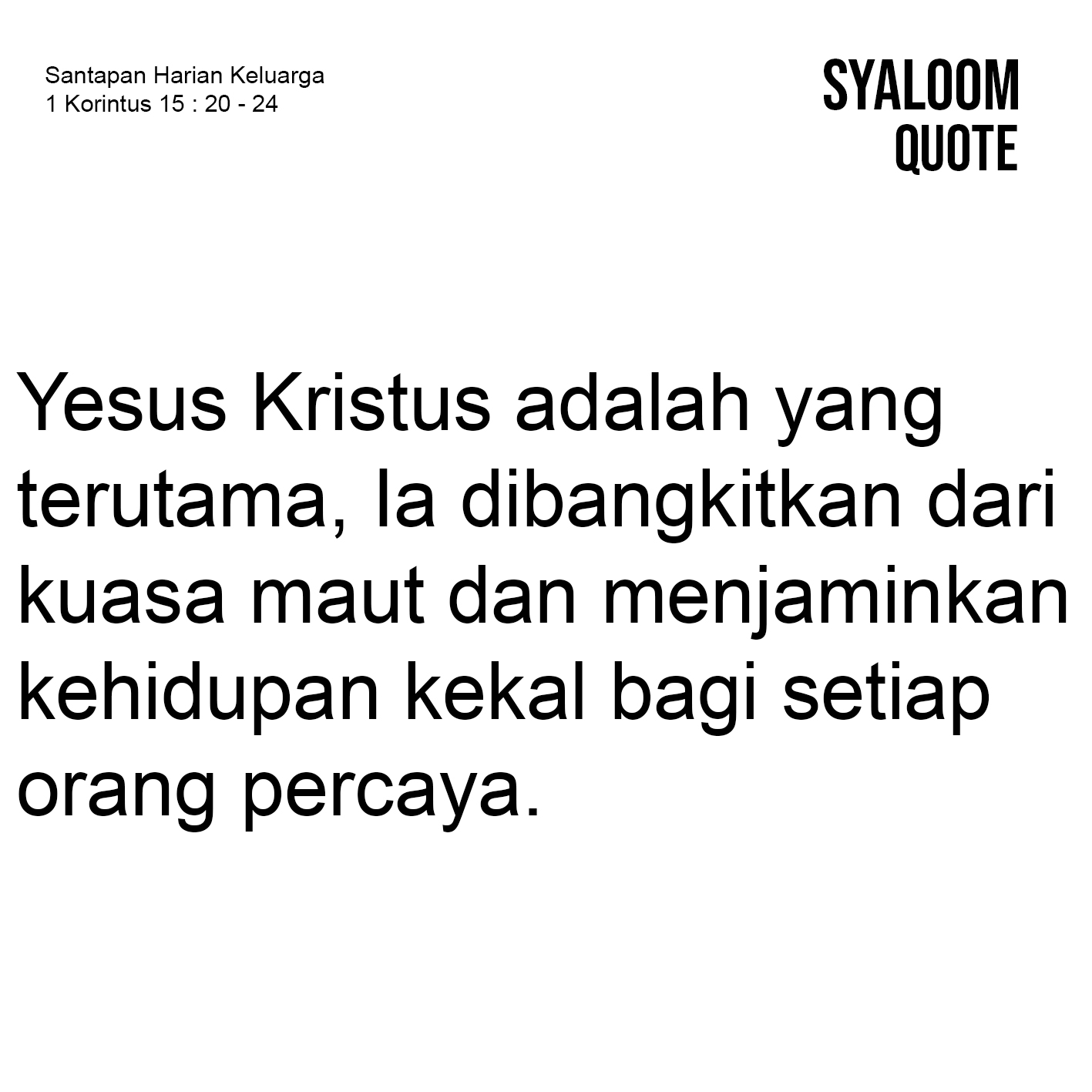 Dalam hidup ini, ada yang utama tetapi ada juga yang lebih utama. Hidup yang utama adalah ketika orang percaya mengusahakan hidupnya untuk memenuhi kebutuhan makan, minum, pakai, tempat tinggal bahkan kebutuhan lainnya seperti kesehatan, pendidikan dan berbagai kebutuhan lainnya. Namun selain itu ada juga hidup yang lebih utama bagi setiap orang percaya. Yesus Kristus menjadi yang lebih utama dalam hidup setiap orang percaya. Menjadikan Yesus Kristus sebagai yang lebih utama artinya orang percaya harus meletakkan pengharapan seutuhnya kepada Dia. Yesus Kristus adalah yang terutama atau yang sulung, Ia dibangkitkan dari kuasa maut dan menjaminkan kehidupan kekal bagi setiap orang percaya. Oleh sebab itu, keyakinan kepada Yesus yang bangkit harus menjadi spirit atau dorongan bagi setiap orang dalam menjalani kehidupannya. Spirit hidup dalam kuasa Yesus terwujud dalam saling mengasihi, saling menopang bahkan saling mengutuhkan sebagai satu persekutuan.
