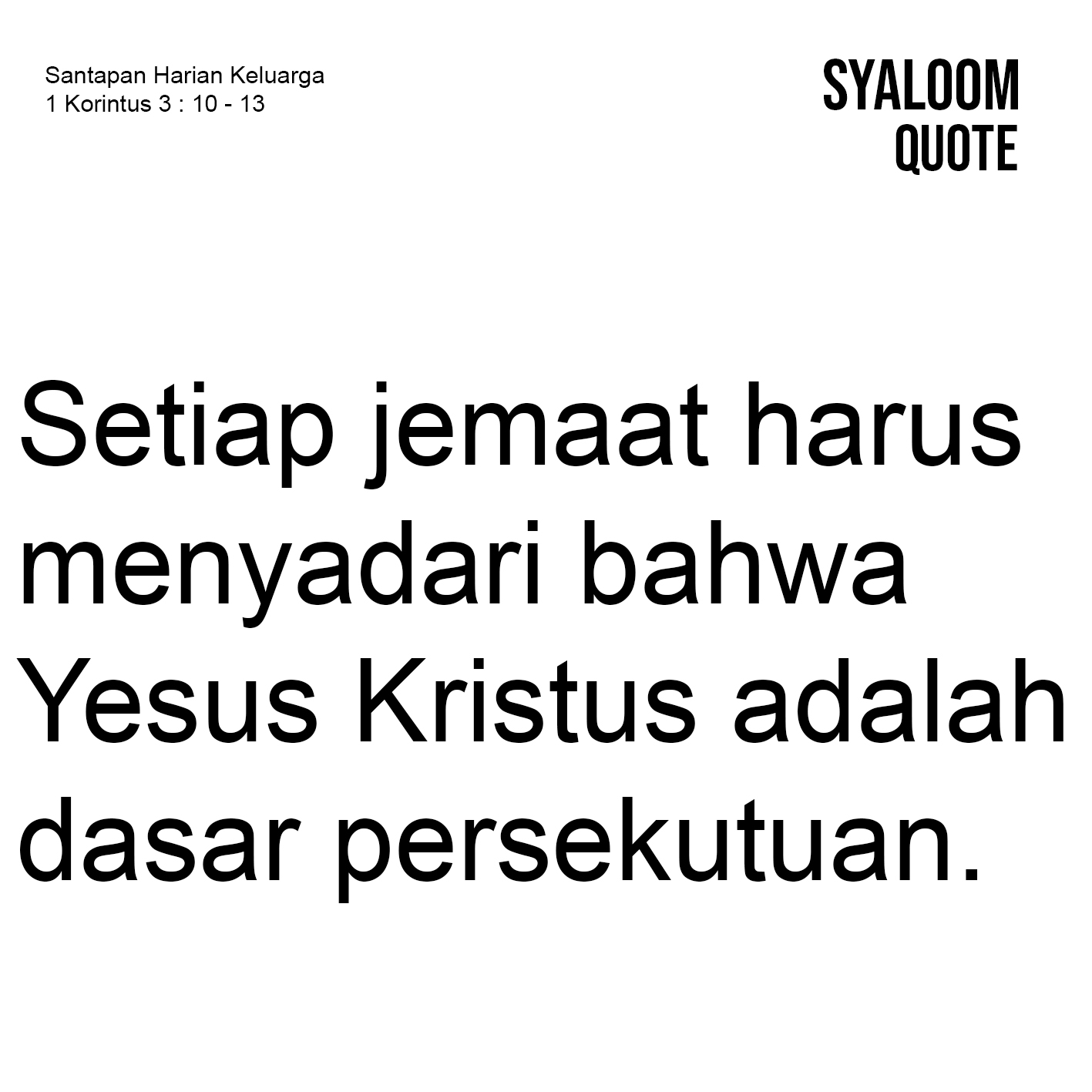Sering disampaikan oleh para ahli ataupun pekerja bangunan, bahwa bangunan yang kokoh hanya bisa dimiliki jika telah lebih dulu memiliki dasar/fondasi yang kuat. Itu sebabnya, dalam sebuah proses pembangunan, selalu didahulukan bagian dasarnya, sebab dasar menjadi penentu keberlangsungan bangunan tersebut. Dalam membangun relasi sebagai persekutuan, Paulus menasehati jemaat di Korintus supaya setiap orang dapat melanjutkan pembangunan yang telah diletakannya (ay. 10). Namun harus diingat bahwa dasar bangunan tidak lagi dapat diubah, sebab dasarnya adalah Yesus Kristus (ay. 11). Bangunan yang dimaksudkan Paulus merujuk pada jemaat Korintus yang telah dibangunnya. Nasehat Paulus itu menjadi kritik untuk kenyataan perpecahan jemaat di Korintus. Bagi Paulus, setiap jemaat harus mengetahui bahwa Yesus Kristus merupakan dasar persekutuan yang telah dibangunnya. Yesus Kristus sebagai dasar jemaat merujuk pada kesatuan dan persatuan dalam kasih. Hal yang sama juga perlu kita maknakan di saat ini, bahwa dasar dalam kehidupan bersama/ persekutuan adalah Yesus Kristus yang penuh kasih. Oleh karena itu, kita perlu menjaganya agar bangunan persekutuan kita tetap berdiri kokoh.