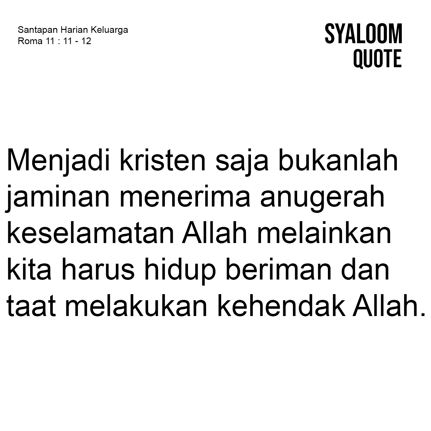 Ada prinsip yang keliru dikalangan orang kristen bahwa “keselamatan pasti diperoleh meskipun kita berbuat dosa”. Pemahaman yang keliru ini juga dianut oleh bangsa Yahudi bahwa mereka adalah bangsa pilihan Allah yang berhak atas keselamatan yang dianugerahkan didalam Yesus Kristus sehingga mendorong mereka untuk tidak taat kepada Tuhan. Melalui perikop ini, Paulus memperingatkan bangsa Yahudi, bahwa memang keselamatan telah dianugerahkan kepada mereka akan tetapi bila mereka tetap hidup didalam dosa dan tidak taat pada perintah Tuhan Allah, maka penolakan dari Allah akan mereka peroleh. Sebaliknya, Allah membuka jalan bagi bangsa-bangsa non Yahudi untuk menerima keselamatan dari Allah. Nasehat Paulus, mengingatkan kita bahwa menjadi kristen saja bukanlah jaminan menerima anugerah keselamatan Allah melainkan kita harus hidup beriman dan taat melakukan kehendak Allah. Firman Tuhan : “Iman tanpa perbuatan, pada hakekatnya adalah mati” (Yakobus 2:17).