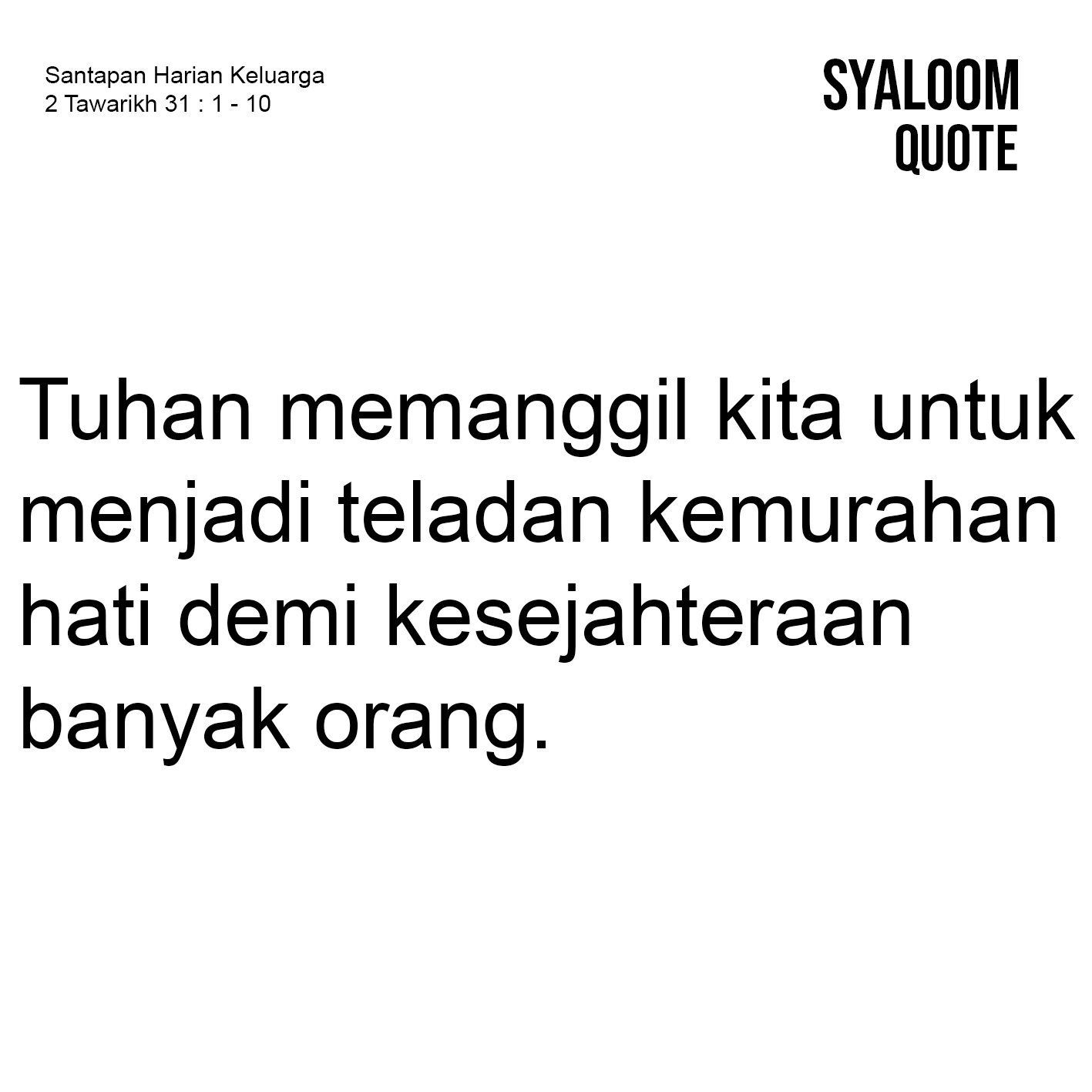 Dari sini dapat dipahami bahwa Tuhan memanggil kita untuk dengan sadar menjadi teladan kemurahan hati demi kesejahteraan banyak orang