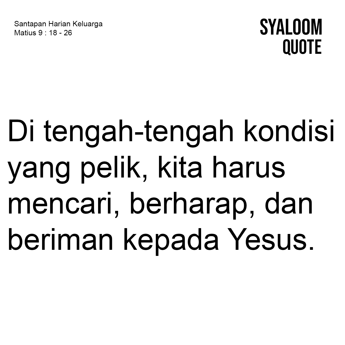 Meyakini kuasa Allah dalam hidup berarti memilih jalan kehidupan dan kesembuhan atas hidup tersebut. Hal ini harus berwujud dalam tindakan iman dengan datang kepada Yesus memohon keselamatan saat sakit, susah, atau menderita. Kisah kepala rumah ibadat dan seorang perempuan yang sakit pendarahan dua belas tahun lamanya menunjukkan betapa Yesus berkuasa atas penyakit dan kematian. Iman kepada Yesus dinyatakan oleh kepala rumah ibadat yang datang menyembah dan memohon belas kasihan Yesus untuk menghidupkan anaknya yang mati. Iman yang sama juga terlihat dari kisah perempuan yang sakit pendarahan selama dua belas tahun lamanya. Keyakinan atas kuasa Yesus, membuat dirinya berani menjamah jumbai jubah Yesus. Yesus tidak hanya menyembuhkan penyakitnya, tetapi juga menahirkannya. Iman menuntun seseorang kepada sebuah tindakan konkret. Di tengah-tengah kondisi yang pelik, kita harus mencari, berharap, dan beriman kepada Yesus.