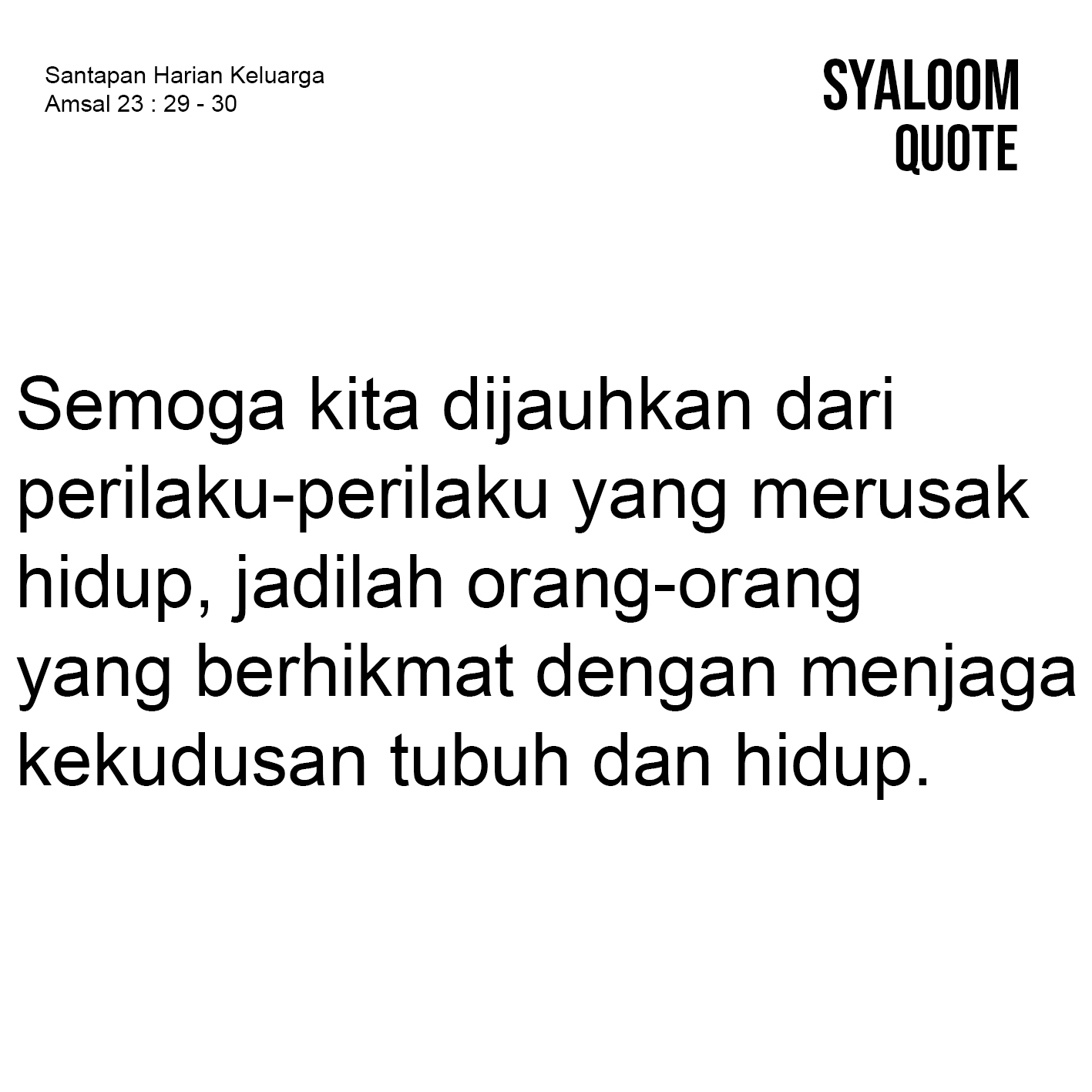 P2PTM Kemenkes RI (Program Pencegahan dan Pengendalian Penyakit tidak menular) menyerukan dampak mengkonsumsi Alkohol bagi kesehatan. Salah satunya yakni menyebabkan gangguan jantung. Terhadap dampak tersebut maka kita diingatkan untuk tetap menjaga kesehatan dan sedini mungkin tidak terjerat kedalam lingkungan yang dipenuhi dengan Alkoholic (Pemabuk). Amsal 23 : 29-30 secara lantang menyampaikan tentang kondisi seorang pemabuk atau pecinta alkohol. Jika dibaca pada ayat selanjutnya kita dapat memahami bahwa dampak seseorang yang mengalami mabuk karena meminum minuman keras adalah kekacauan (ayat.33-35). Untuk itu, pembinaan dalam lingkup keluarga harus tetap digemakan. Pembinaan bukan hanya pada anak-anak, tetapi antar suami-istri pun haruslah diperkuat. Hanya dengan demikian, kita akan terhindar dari kekacauan dan kehancuran akibat kemabukan itu. Semoga kita dijauhkan dari perilaku-perilaku yang merusak hidup, jadilah orang-orang yang berhikmat dengan menjaga kekudusan tubuh dan hidup.