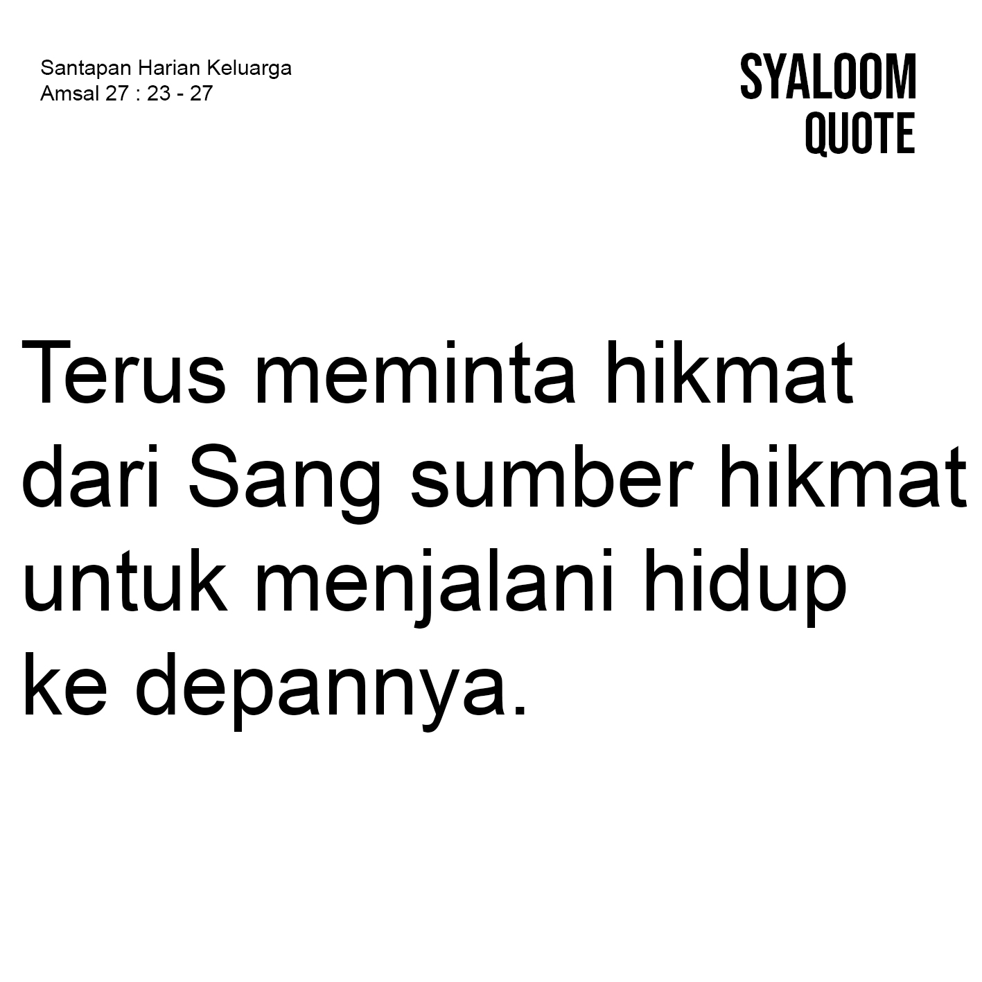 Salah satu hal mendasar dan yang paling penting dalam menjalani kehidupan yakni memenuhi seluruh kebutuhan hidup. Terhadap hal itu bagian Alkitab Amsal 27:23-27 memberikan pelajaran tentang suatu kehidupan di desa, berkaitan dengan bangsa Israel kuno yang cenderung berusaha pada bidang peternakan dan pertanian. Sebagaimana ternak harus dipelihara, demikian juga sawah harus digunakan dengan sebaik-baiknya sehingga dapat menghasilkan. Dari hasil itulah segala kebutuhan manusia dapat dipenuhi termasuk kebutuhan makanan (ay. 27). Pelajaran utama dari bagian Alkitab ini ialah kita harus memakai hikmat dalam membuat rencana, sehingga semua yang direncanakan dapat berjalan dengan baik. Sebab hewan yang sehat, sawah yang memberikan hasil, panen yang tepat waktu dan mempergunakan hasilnya dengan bijaksana semua itu membutuhkan hikmat. Pertanyaannya ialah apakah kita telah menggunakan hikmat dalam menjalani hidup? Sebab oleh hikmat Allah, setiap orang akan dimampukan serta dituntun dalam suatu perencanaan demi kebutuhan hidupnya. Artinya melalui firman Tuhan saat ini, kita diajarkan bahwa betapa pentingnya hikmat yang berasal dari pada Allah. Itu sebabnya mengakhiri usbu ini sebagai orang-orang percaya baik kehidupan pribadi maupun keluarga, kita semua diingatkan untuk terus meminta hikmat dari Sang sumber hikmat untuk menjalani hidup ke depannya.