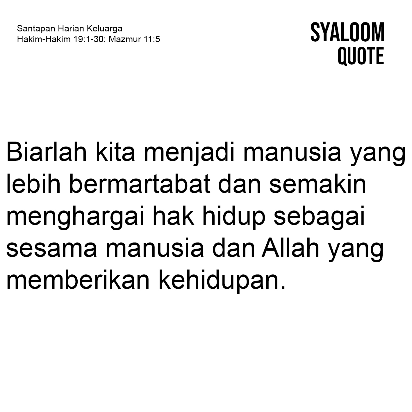 Berbicara perihal tindak kekerasan bukanlah suatu topik yang baru pernah dicakapkan. Mengapa? Karena hal ini sudah sering kita dengarkan dan diikuti melalui berbagai media maupun di lingkungan sekitar. Tidak hanya itu, bisa jadi ada diantara kita yang justru menjadi korban bahkan pelaku kekerasan. Hal yang sama pun dapat kita temui dalam kisah di Gibea. Tindak kekerasan yang dialami gundik seorang Lewi yang tinggal dipegunungan Efrain saat bermalam di rumah orang Gibea ketika hendak kembali ke tempat tinggalnya begitu tragis. Tindak kekerasan tersebut terjadi karena adanya desakan dari orang-orang dursila yang ada di situ. Karena terdesak maka orang Lewi tersebut mengorbankan gundiknya, sehingga perempuan itu diperkosa dan dipermainkan semalam-malaman sampai pagi yang berujung kematian. Mirisnya jenazah tersebut dimutilasi menjadi dua belas bagian oleh suaminya sendiri dan disebarkan ke seluruh daerah Israel. Perbuatan yang tidak berprikemanusiaan ini tentu saja melawan kehendak Allah yang memberi anugerah kehidupan (Mzm 11:5b). Merenungkan firman ini maka kita disadarkan agar berhenti melakukan kekerasan, sebab sadar atau tidak kita pernah melakukanya lewat sikap, tutur kata maupun perbuatan. Biarlah kita menjadi manusia yang lebih bermartabat dan semakin menghargai hak hidup sebagai sesama manusia dan Allah yang memberikan kehidupan.