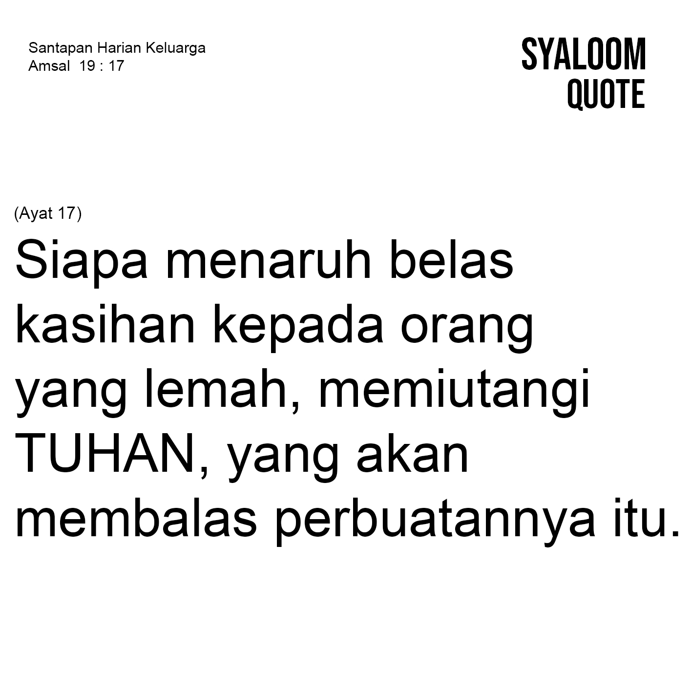 Bagaimana mungkin kita memiutangi Tuhan, karena Tuhan itu kaya dan pastilah segera membayar hutangnya kepada kita. Namun, bacaan kita memaparkan bahwa Allah bisa jadi berhutang bukan karena kita meminjamkan sesuatu kepada Dia tetapi karena perbuatan kita kepada orang lain. Apakah itu? Yang pertama, karena kita menaruh belas kasihan kepada setiap orang. Tuhan senang kepada orang yang peduli terhadap sesamanya. Dia menghargai perbuatan orang yang melakukan sesuatu terhadap orang lain karena didorong belas kasihan. Belas kasihan menunjuk pada sikap yang turut merasakan apa yang dirasakan oleh orang lain. Orang yang mendapatkan belas kasihan itu adalah orang yang lemah atau tersisihkan yaitu orang yang sering tidak memiliki jalan untuk mendapatkan pertolongan dari orang lain. Memberi didasari oleh belas kasihan merupakan sebuah cara untuk melayani Tuhan dan Dia akan memberi upah kepada orang yang berbuat demikian. Yang kedua, karena kita mau berkorban bagi sesama. Terkadang untuk menolong orang lain kita harus berkorban. Berkorban yang sungguh–sungguh dan yang mau membantu dengan hati yang tulus tanpa pamrih. Milikilah hati yang penuh belas kasih, yang suka berbagi dan menolong karena dengan demikian kita akan menjadi orang – orang yang dipenuhi berkat.