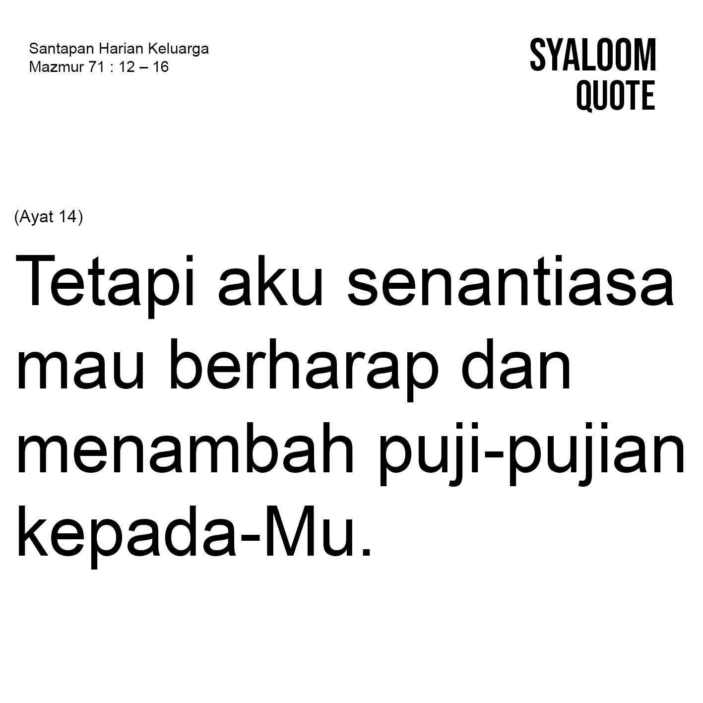 Doa: Ya Tuhan, bimbinglah kami untuk selalu mengandalkanMu. Amin.