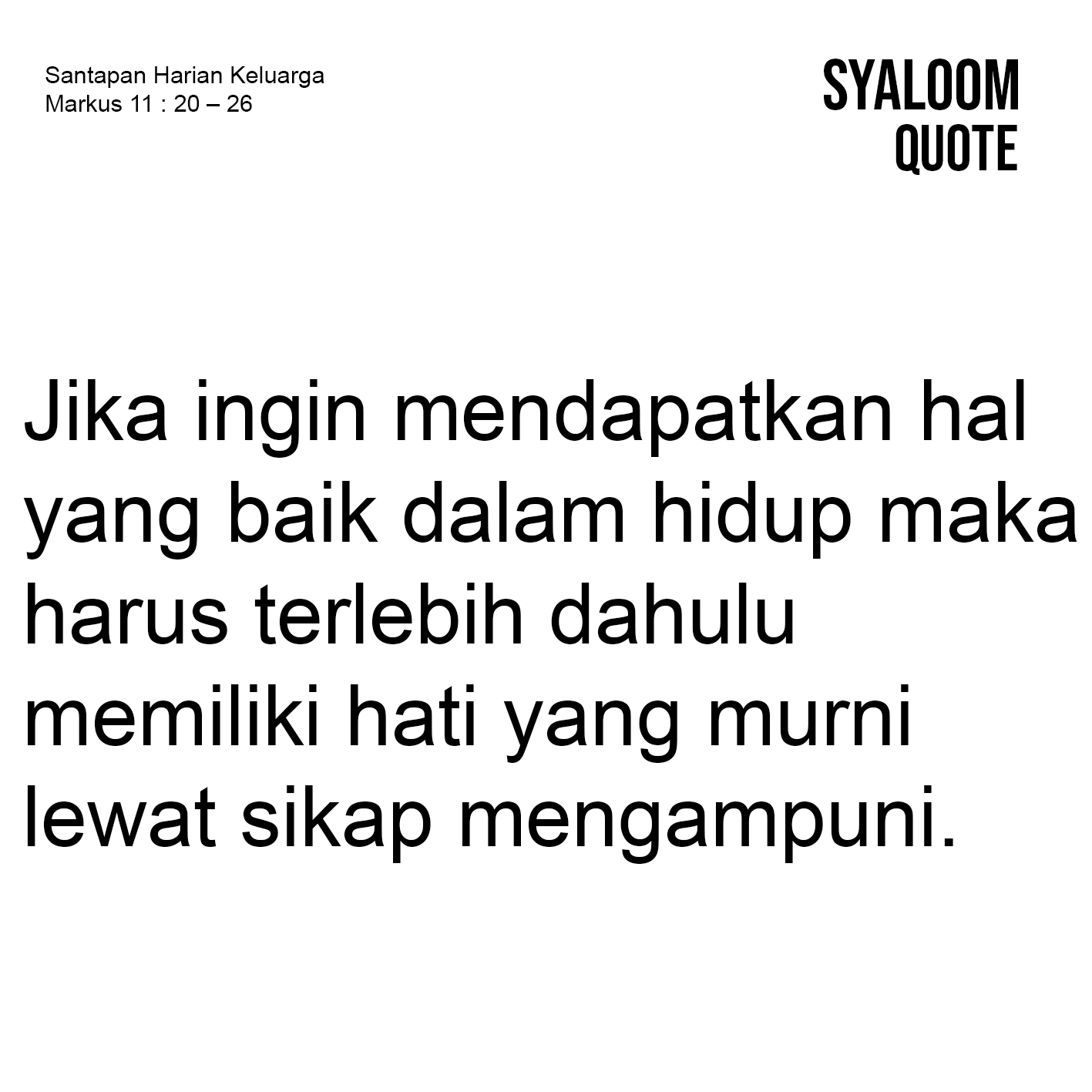 Oleh sebab itu, jika ingin mendapatkan hal yang baik dalam hidup maka harus terlebih dahulu memiliki hati yang murni lewat sikap mengampuni. Dengan demikian maka Tuhan pun akan mengampuni dan memberikan segala sesuatu yang diinginkan dalam hidup