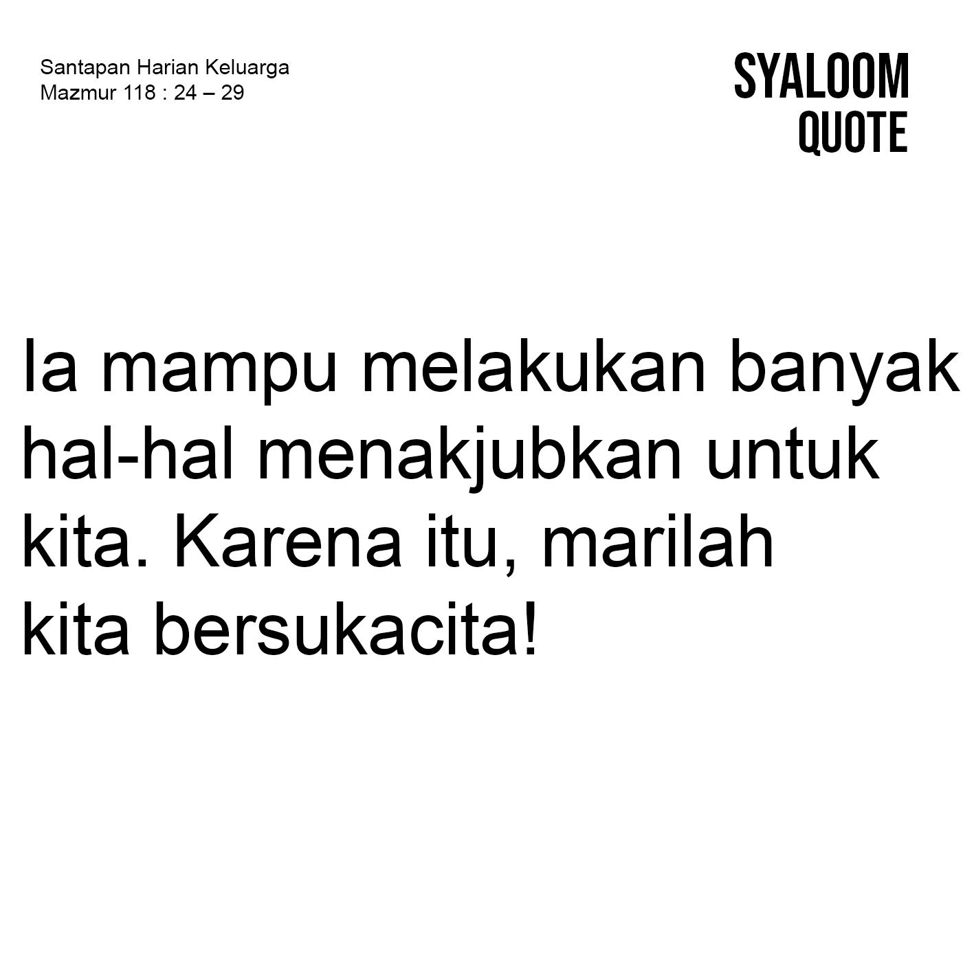 Doa: Ya Tuhan, mampukan kami untuk bersukacita dalam nyanyian hidup kami, yang disertai iman. Amin.