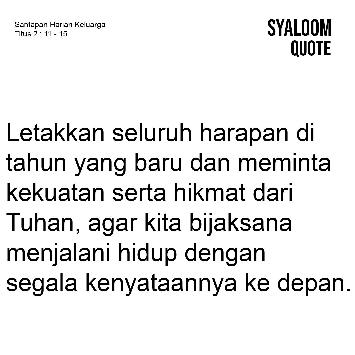Doa: terima kasih ya Tuhan, sebab atas kasih karuniaMu kami hidup di tahun yang baru. Amin.