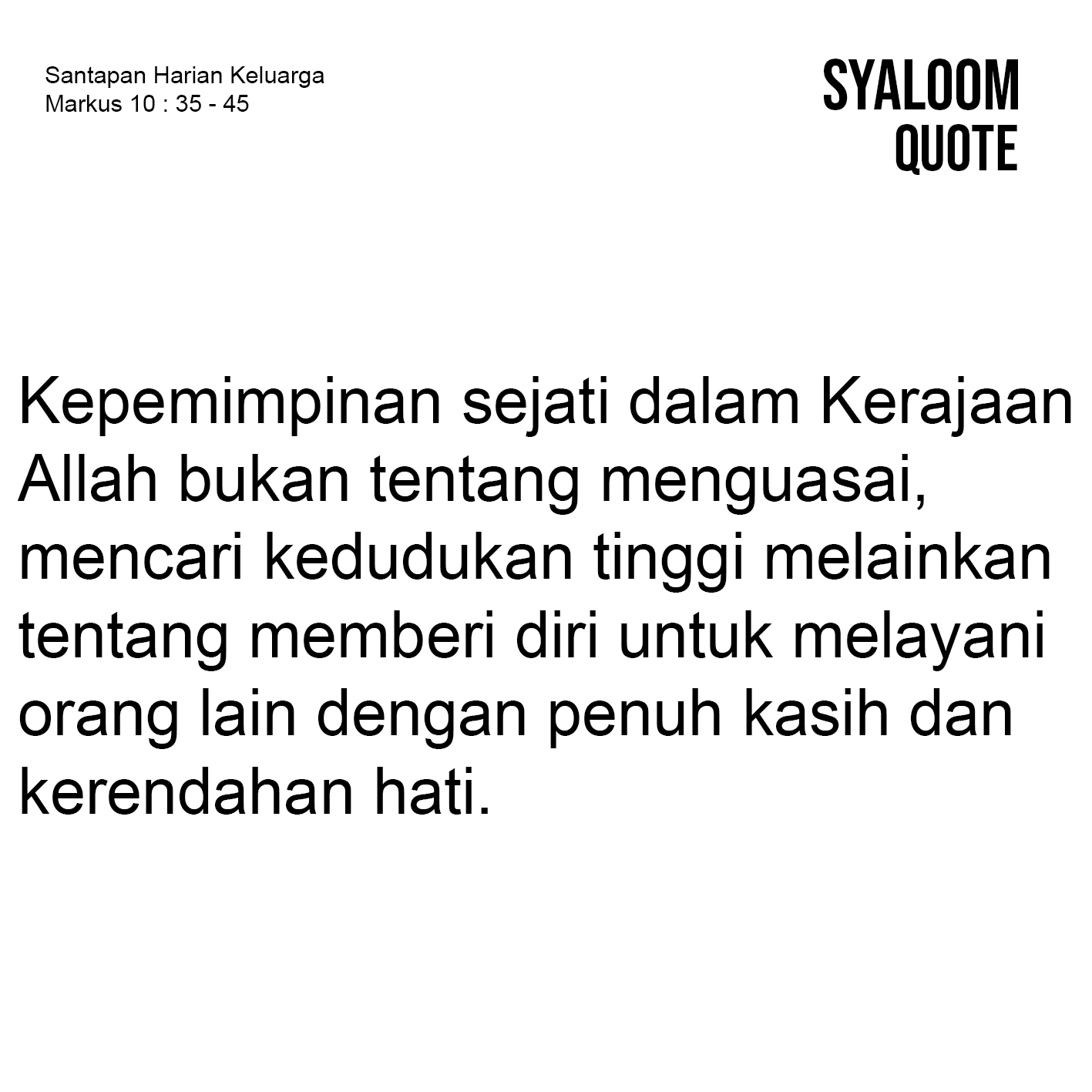 Manusia cenderung memiliki keinginan untuk mencapai posisi yang lebih tinggi dan terhormat. Keinginan ini seringkali berakar pada beberapa faktor, seperti: kebutuhan untuk diakui, dihargai dan memiliki pengaruh dalam kehidupan sosial. Ambisi untuk menjadi yang terbesar/terkemuka ini sangat ditentang oleh Tuhan Yesus sebagaimana terdapat dalam perikop tadi. Yesus dengan tegas merespons permintaan yang penuh ambisi dari Yakobus dan Yohanes yang ingin duduk di sebelah kanan dan kiri Yesus dalam kemuliaan-Nya (ayat 37). Mereka menginginkan posisi terhormat, kedudukan yang tinggi dan penghargaan yang besar. Namun kepemimpinan menurut Yesus adalah tentang melayani bukan menguasai. “Siapa yang ingin menjadi besar di antara kamu , hendaklah ia menjadi pelayanmu” (ayat 43). Kepemimpinan sejati dalam Kerajaan Allah bukan tentang menguasai, mencari kedudukan tinggi melainkan tentang memberi diri untuk melayani orang lain dengan penuh kasih dan kerendahan hati.