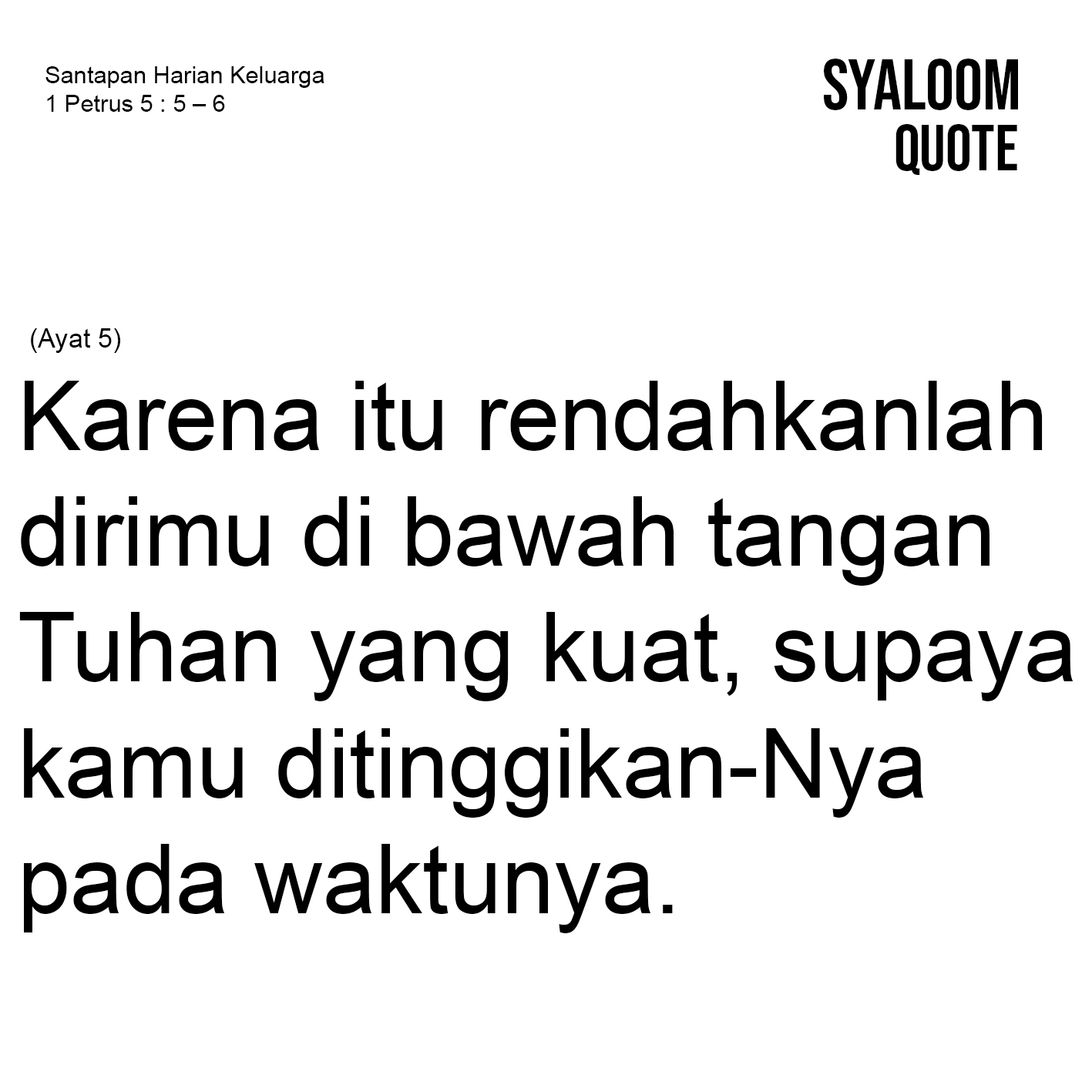 Nasehat rasul Petrus terkhusus kepada para pemuda agar mereka tunduk kepada orang-orang tua. Pengertian tunduk berarti menghormati dan menghargai orang tua yang hadir sebagai wakil Allah dalam kehidupan kita di dunia ini. Kenyataan sering membuktikan terkadang orang muda kurang menghargai dan menghormati para orang tua. Hal ini disebabkan karena perbuahan zaman dengan segala kemajuannya sehingga anak-anak muda menganggap orang tua telah ketinggalan zaman. Orang muda merasa diri lebih kuat, lebih hebat dan lebih pintar sehingga membuat mereka sombong dan angkuh. Padahal rasul Petrus menasehati bahwa hal menghormati dan mengahagai orang tua akan membawa dampak positif yakni menikmati berkat Tuhan. Sebab orang yang angkuh dan sombong, Allah menentang mereka. Itulah sebabnya sebagai orang muda kita selalu rendah hati dengan menjadikan orang tua sebagai teladan dengan menghormati dan menghargai mereka. Kita dengar setiap nasehat untuk yang terbaik kita lakukan sebab mereka punya segudang pengalaman hidup dengan bergantung dan berakar didalam persekutuan dengan Tuhan.