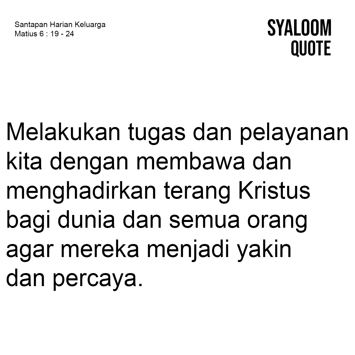 Doa: Ya Tuhan mampukan kami agar kami mampu menjadi terang dalam kehidupan kami. Amin.