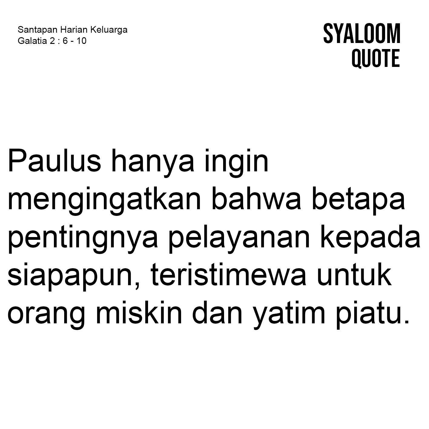 Suatu hal yang sulit dilepaskan dari setiap orang adalah tradisi. Hal itu terlihat pada orang-orang kristen di Galatia. Mereka sudah menerima Kristus, namun masih tetap mempertahankan tradisi Yahudi, yaitu sunat. Orang-orang kristen di Galatia mempersoalkan perkara sunat dan tidak bersunat. Padahal, posisi Paulus terhadap isu ini sudah jelas, yaitu ia sudah tidak punya keberatan dengan mereka yang tidak bersunat. Sunat atau tidak bersunat, bagi Paulus, sama sekali tidak berpengaruh pada anugerah keselamatan. Dalam pemberitaan Injil, Paulus tidak tunduk kepada sekelompok orang yang berusaha menghalanginya. Ia sama sekali tidak memandang kasta. Paulus hanya ingin mengingatkan bahwa betapa pentingnya pelayanan kepada siapapun, teristimewa untuk orang miskin dan yatim piatu. Pesan terdalam dari Paulus adalah pelayanan yang dikerjakan Paulus itu bersifat menyeluruh, tanpa memandang muka. Ini penting bagi kita ke depan.