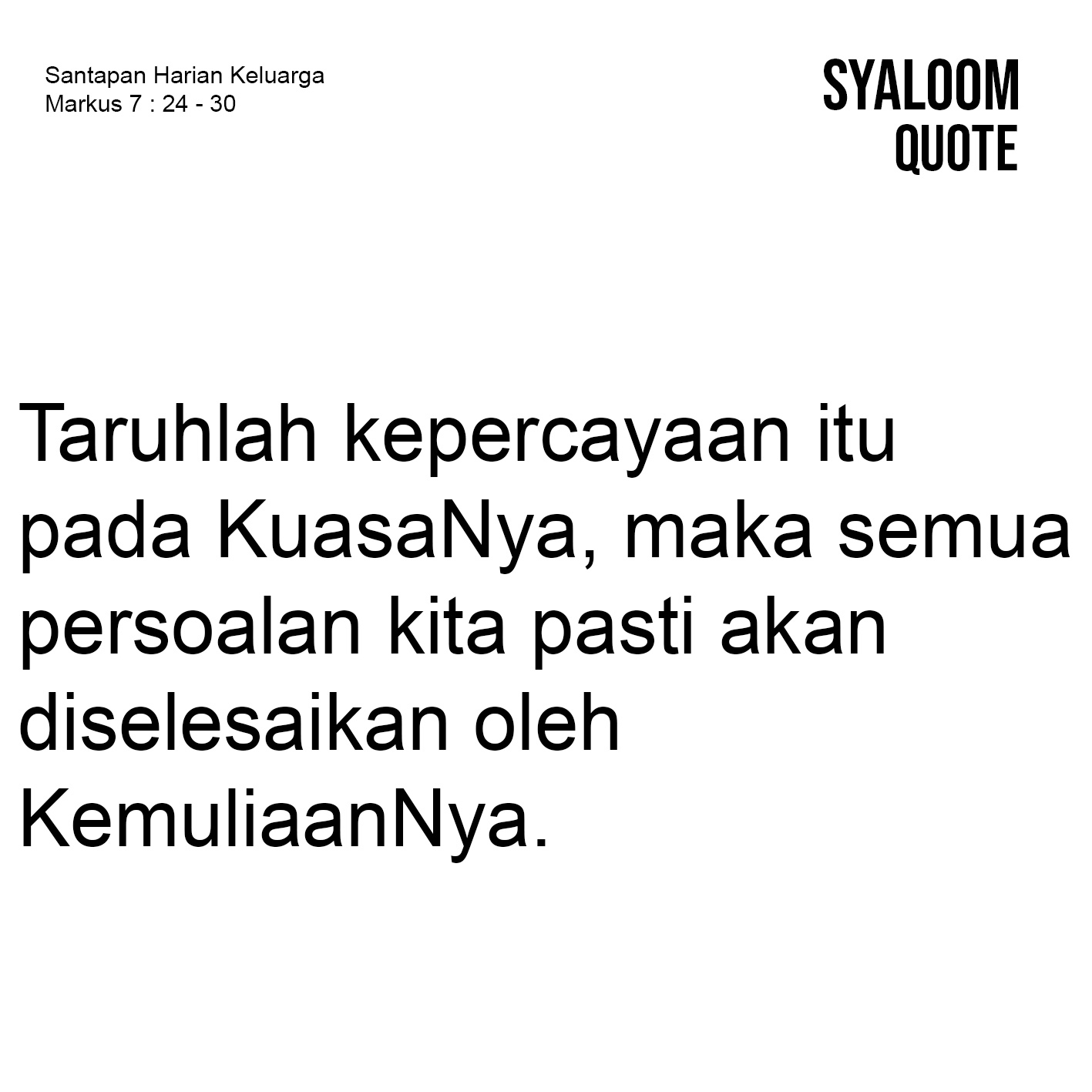 Doa: Kami Percaya Tuhan, Engkau Penolong kami di dalam kesesakan. Amin.