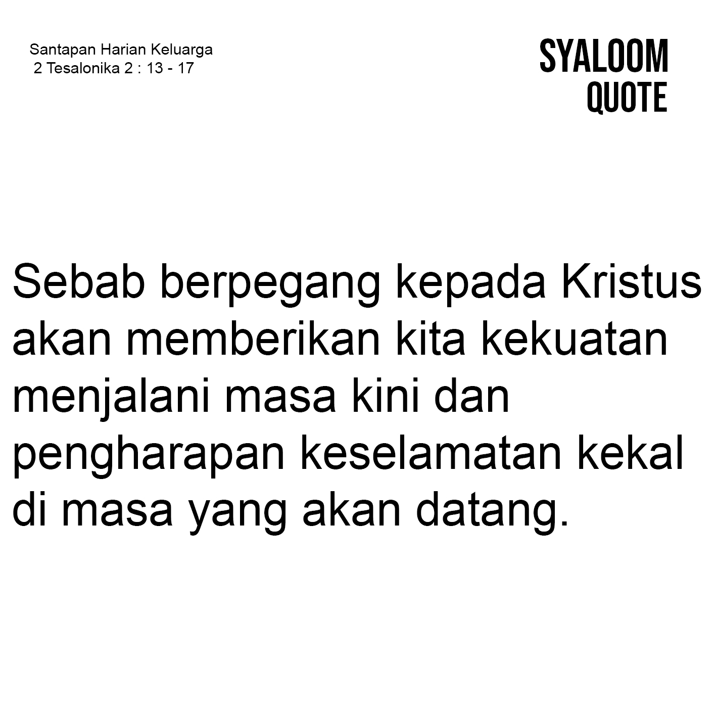 Dalam proses pemberitaan injil, kita akan selalu diperhadapkan dengan kegucangan nilai-nilai kekristenan. Dalam keguncangan nilai tersebut, kita bisa saja tetap berdiri teguh dan berpegang pada ajaran yang benar, namun kita bisa juga meninggalkan ajaran yang benar. Ketakutan tersebut dirasakan Paulus untuk jemaat di Tesalonika yang sementara didatangi oleh ajaran-ajaran yang berbeda. Jemaat Tesalonika diperhadapkan dengan perbedaan ajaran mengenai kedatangan Tuhan, sehingga iman mereka goyah dan mereka mulai malas dalam melakukan banyak pekerjaan pelayanan. Berdasarkan situasi tersebut maka Paulus mengingatkan jemaat Tesalonika agar tetap berdiri teguh dan berpegang pada ajaran-ajaran yan telah diterima (ay. 15). Seruan Paulus juga penting kita maknai di saat ini. Di tengah berbagai perkembangan zaman, ada nilai-nilai kekristenan yang turut tergerus sehingga iman Kristen semakin melemah. Kita mesti ingat, bahwa perkembangan zaman adalah sesuatu yang tidak dapat kita tolak, namun kita harus tetap berpegang pada ajaran Kristus. Berpegang pada ajaran Kristus tidak akan membuat kita lemah dan mengalami kemunduran. Sebab berpegang kepada Kristus akan memberikan kita kekuatan menjalani masa kini dan pengharapan keselamatan kekal di masa yang akan datang.